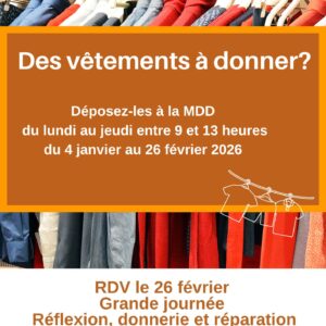 Autour des vêtements Le 26 février, la MDD organisera une nouvelle donnerie de vêtements. L’occasion de se faire plaisir gratuitement