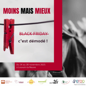 Ensemble consommons mieux ! Moins mais mieux. Black Friday, c’est démodé ! Black Friday. Et si nous faisions autrement ? Face aux