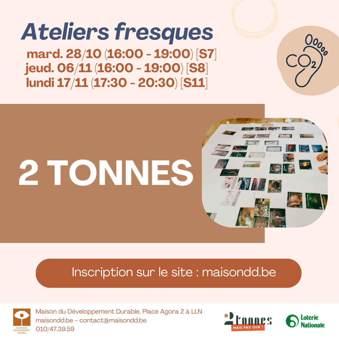 La MDD vous offre la possibilité de participer à diverses fresques et ateliers! Intéressé·e par cet atelier 2 tonnes? Inscrivez vous vite via ce formulaire : LIEN D’INSCRIPTION : ATELIER « 2 TONNES ».