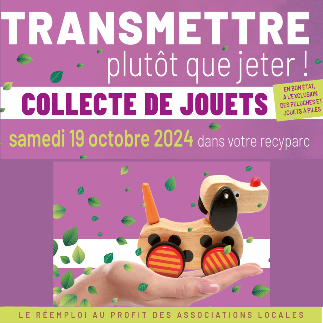 Pour in BW, cette collecte est l’occasion de sensibiliser une nouvelle fois la population à la problématique de la prévention des déchets et du réemploi. Le message que nous souhaitons faire passer est simple : « Avant de jeter, pensez à réutiliser ! ». Certains objets dont les jouets qui ne vous sont plus utiles peuvent faire le bonheur de quelqu’un dans votre entourage (famille, amis, …) ou d’écoles, mouvements de jeunesse, paroisses, CPAS, associations diverses, …