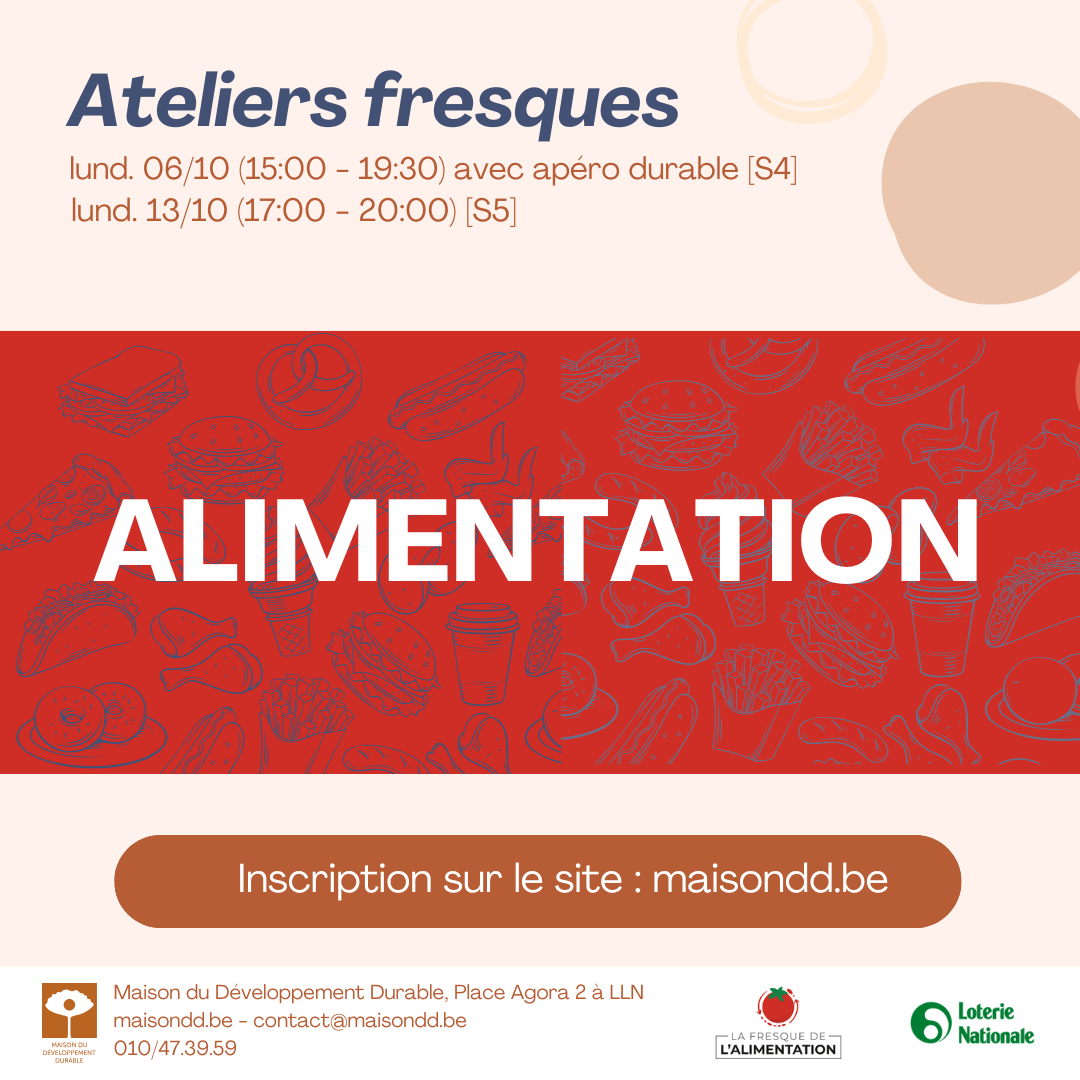 L’atelier du 06/10 aura un « petit plus » dans la mesure où, en fin de fresque, un petit « apéro » vous sera proposé en lien avec l’alimentation durable! 🍅