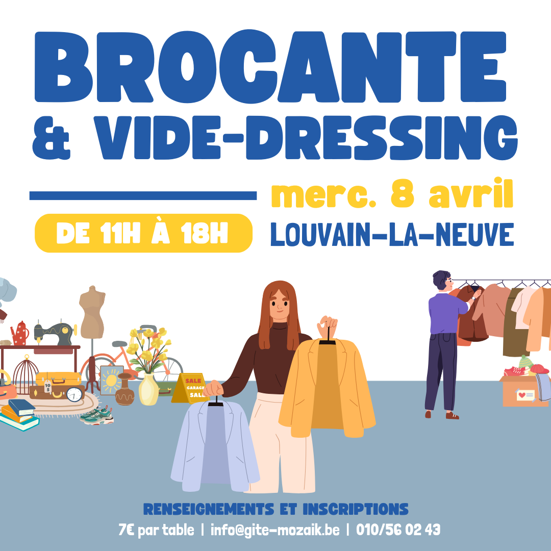 Vous êtes en train d’organiser un tri dans vos placards ? Vous avez des vêtements que vous ne portez plus et qui méritent une seconde chance ? Alors, cet événement est fait pour vous ! 👉 Réservez une table au vide-dressing du kotextile, le mercredi 08/04, pour 7€ en envoyant un mail à info@gite-mozaik.be ou par téléphone au 010/56 02 43.