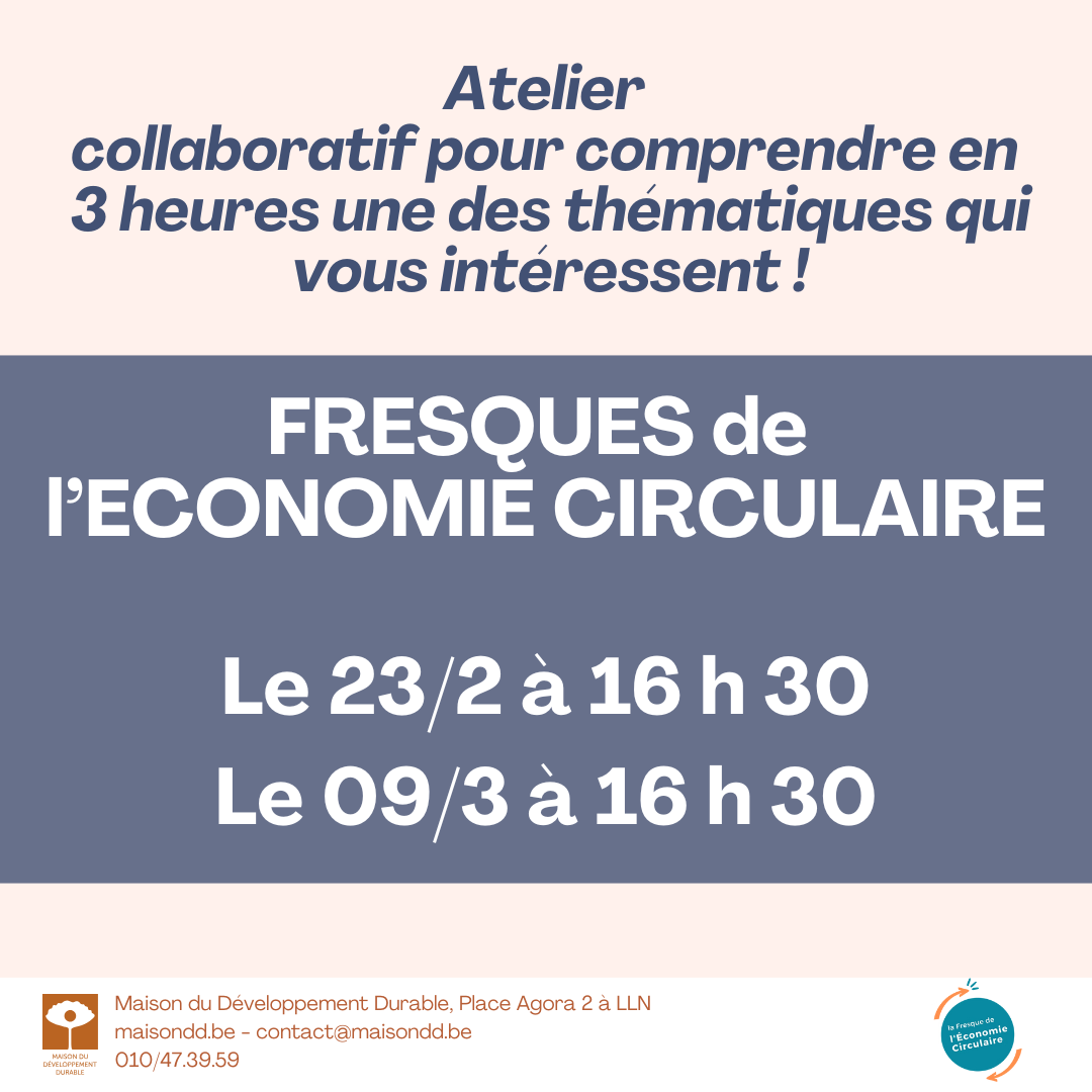 À l’issue de l’atelier, les participant·es sont motivé·es et outillé·es pour agir à leur échelle. Pour plus d’infos, consultez directement le site officiel de la fresque de l’économie circulaire ou venez poser toutes vos questions à la MDD avant de vous inscrire. N’hésitez pas également à découvrir toutes les autres fresques qui seront proposées par la MDD cette année!