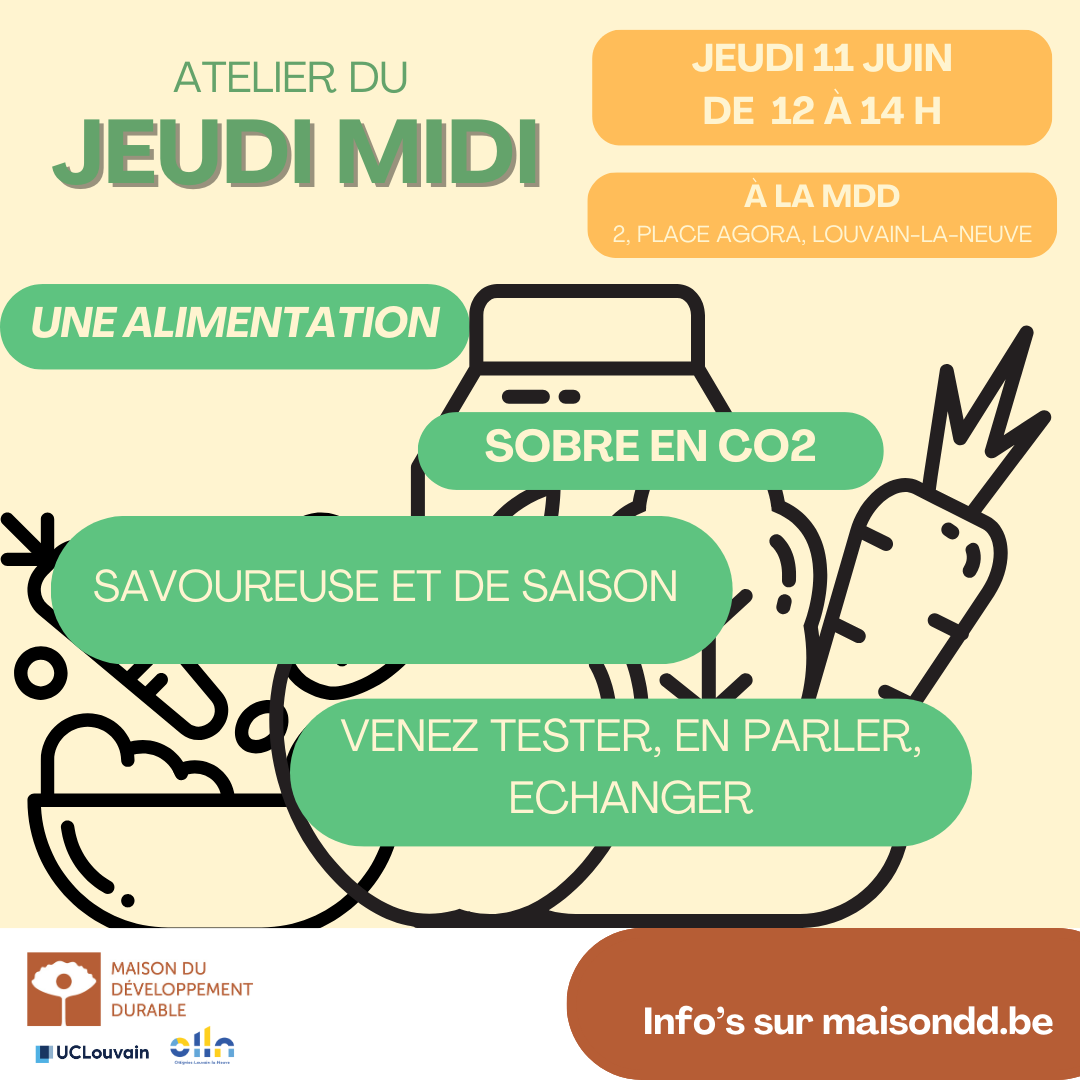 Fini les aliments tout prêts, les recettes toutes faites : place à la spontanéité et à la créativité ! Vous n’avez pas d’idée mais vous avez envie de cuisiner un repas sain, durable – qui a peu d’impact en CO2 – et de saison, vous avez envie de stimuler votre créativité ou vous avez une bonne recette d’un plat aux lentilles que vous avez envie d’échanger…  Nous vous invitons ce jeudi midi pour passer un moment agréable et gourmand