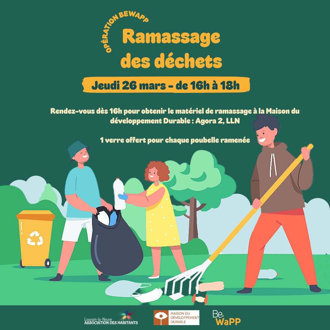 Be WaPP asbl agit en Wallonie pour améliorer la propreté publique en développant des actions visant à réduire la présence de déchets sauvages et de dépôts clandestins. Chaque année, elle propose aux citoyens, associations… de se mobiliser pendant quelques heures pour combattre ensemble la pollution. Si vous ne pouvez nous rejoindre, vous pouvez soit rejoindre une autre équipe ou en créer une…via le site bewapp.be.